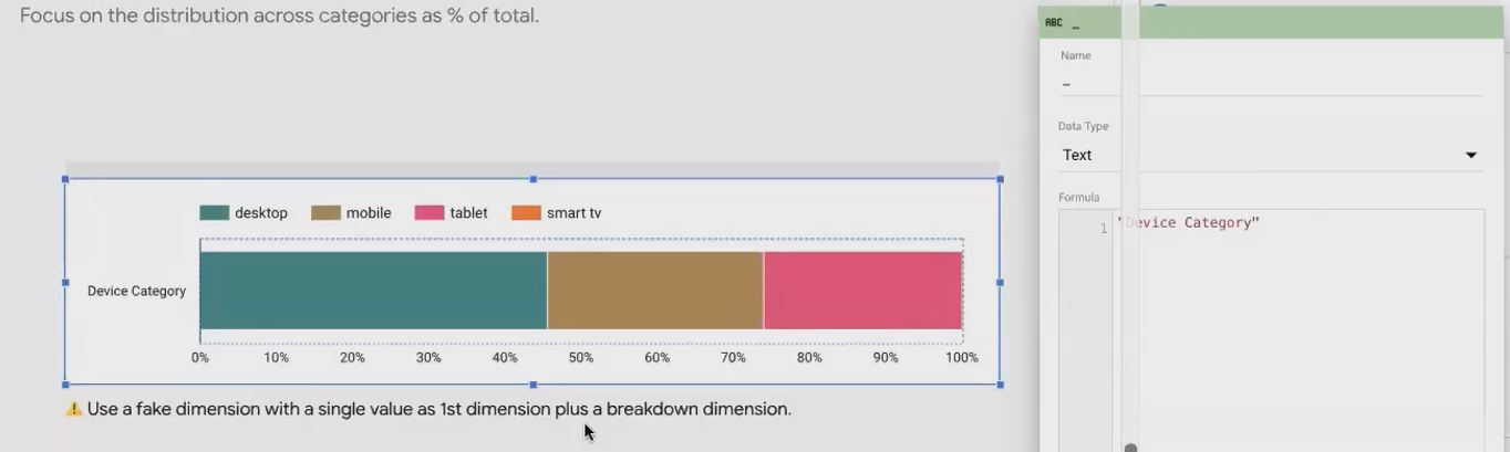 Sometimes you want to show an overall distribution without breaking it down by a primary dimension. This requires a clever workaround: