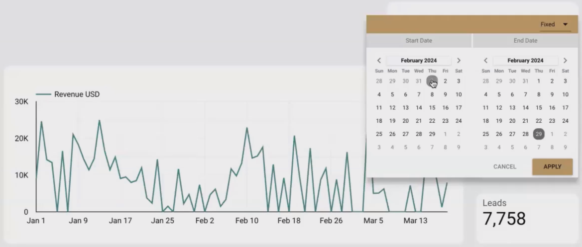 When a viewer selects a date range and clicks "Apply," Looker Studio dynamically refreshes all connected charts and tables on your report to display data only from that selected period. It's like having a time machine for your data!