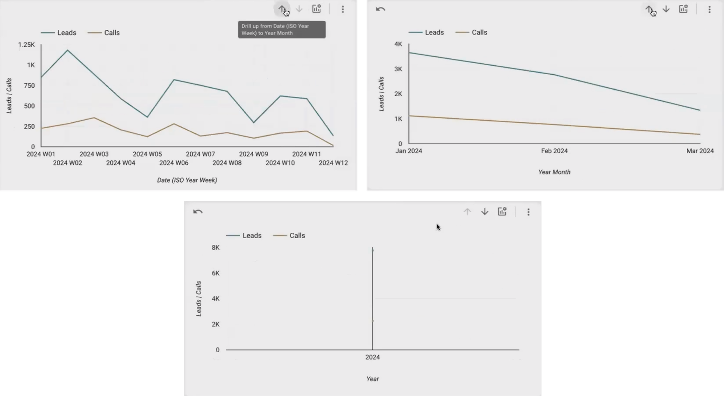 Changing the X-axis scale using the drill down/up buttons in Time Series Charts