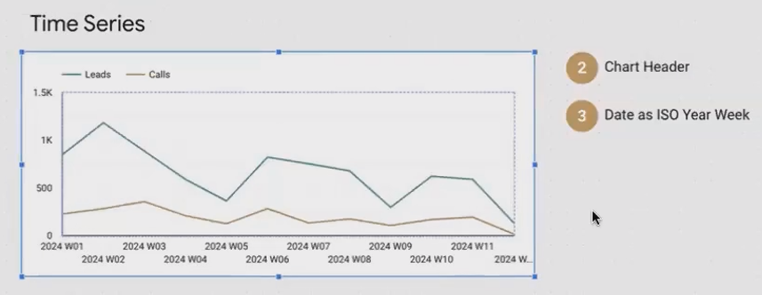 Insider Technique: Instead of showing daily fluctuations, aggregate your data by week or month to make patterns more apparent. In Looker Studio, you can do this by changing the date dimension from "Date" to "ISO Year Week" or "Year Month."