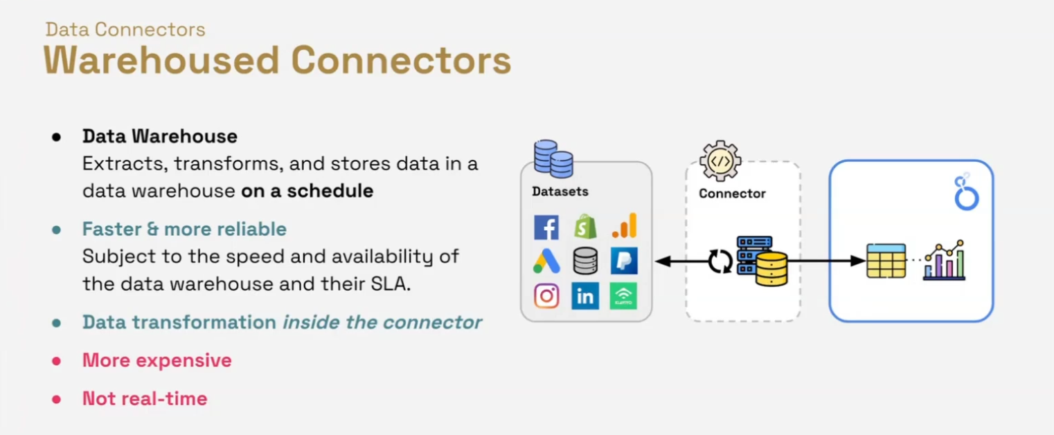 Warehoused connectors take a fundamentally different approach to data retrieval.