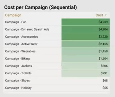 Each campaign is assigned a distinct color, allowing quick identification across multiple charts without implying that any campaign is inherently "better" than others.