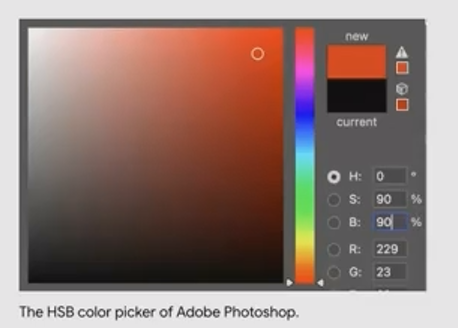 While computers use RGB, humans tend to think about color differently. This is where HSB (Hue, Saturation, Brightness) comes in: