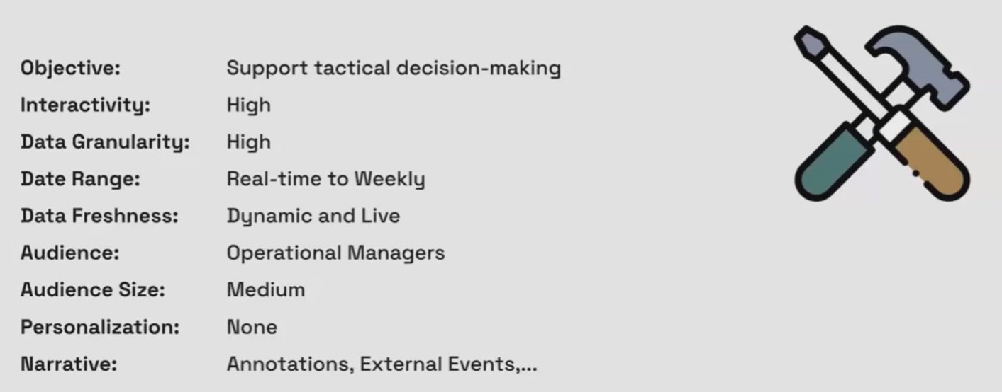 Perfect For: Operational managers who need to make frequent tactical decisions based on data, such as: