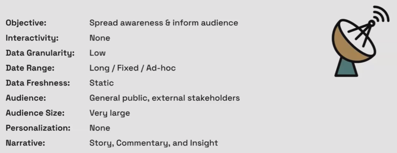 Purpose: Broadcast information and tell data stories to a broad audience.