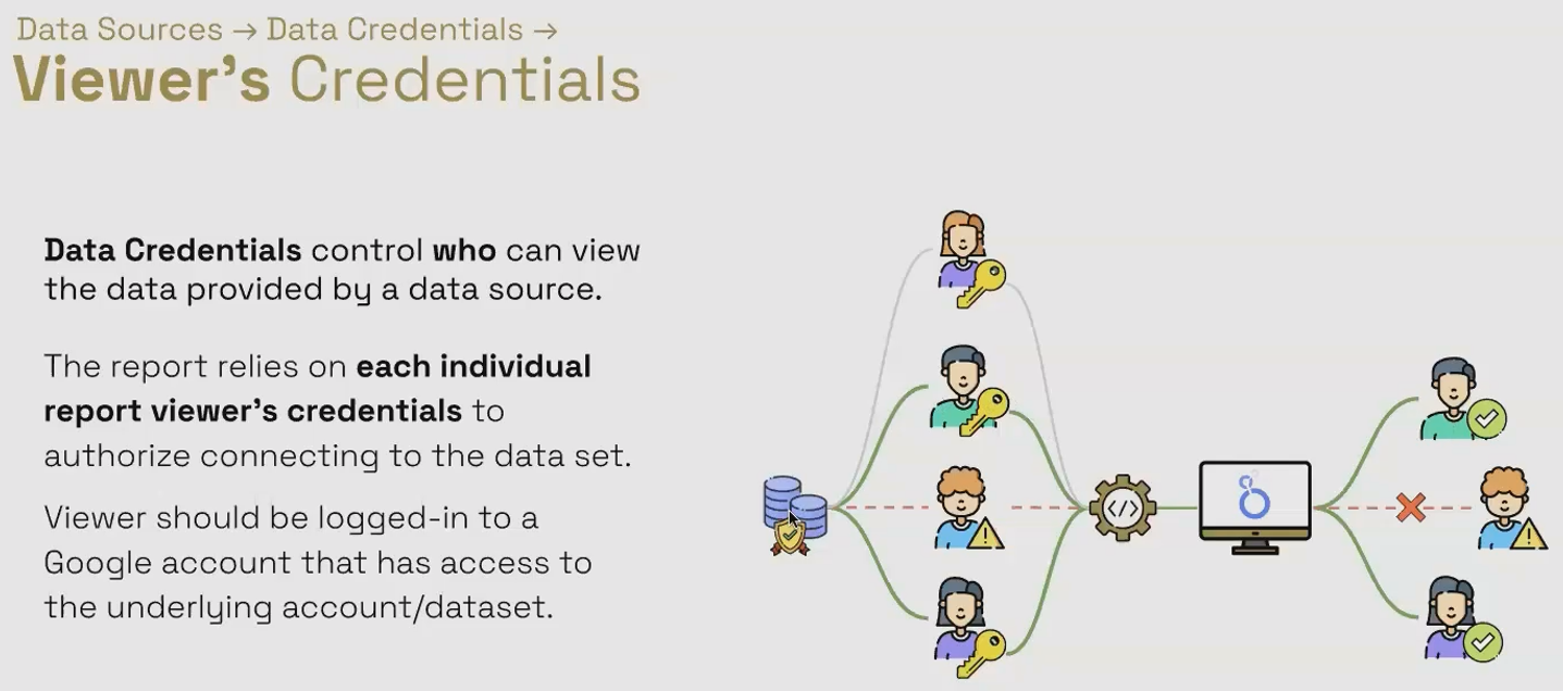 Data credentials determine whose authentication is used when Looker Studio connects to your data. This setting is crucial for security, governance, and ensuring your reports work for the right people.
