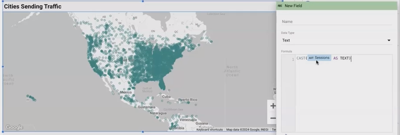 CONCAT('Sessions: ', CAST(Sessions AS TEXT))For multi-line tooltips that display multiple metrics, use the \n character: